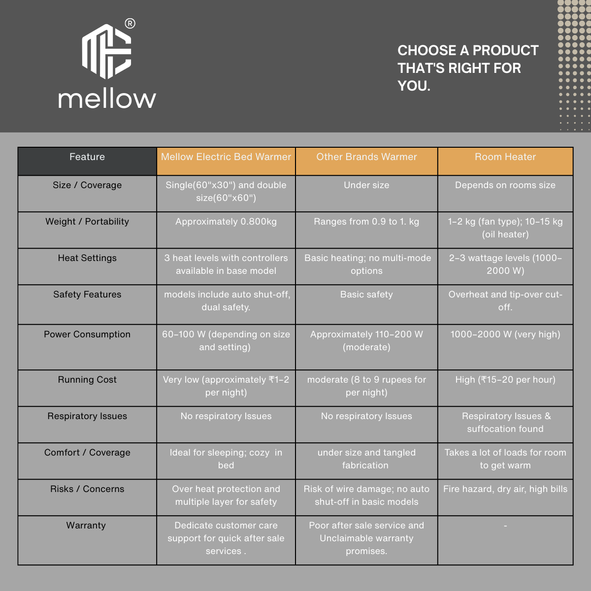 The Mellow Electric Blanket is designed to keep you cozy and comfortable during chilly winter nights. With advanced heating technology, soft fabric, and low power consumption, this electric bed warmer is a safe, efficient, and luxurious choice for your bedroom.